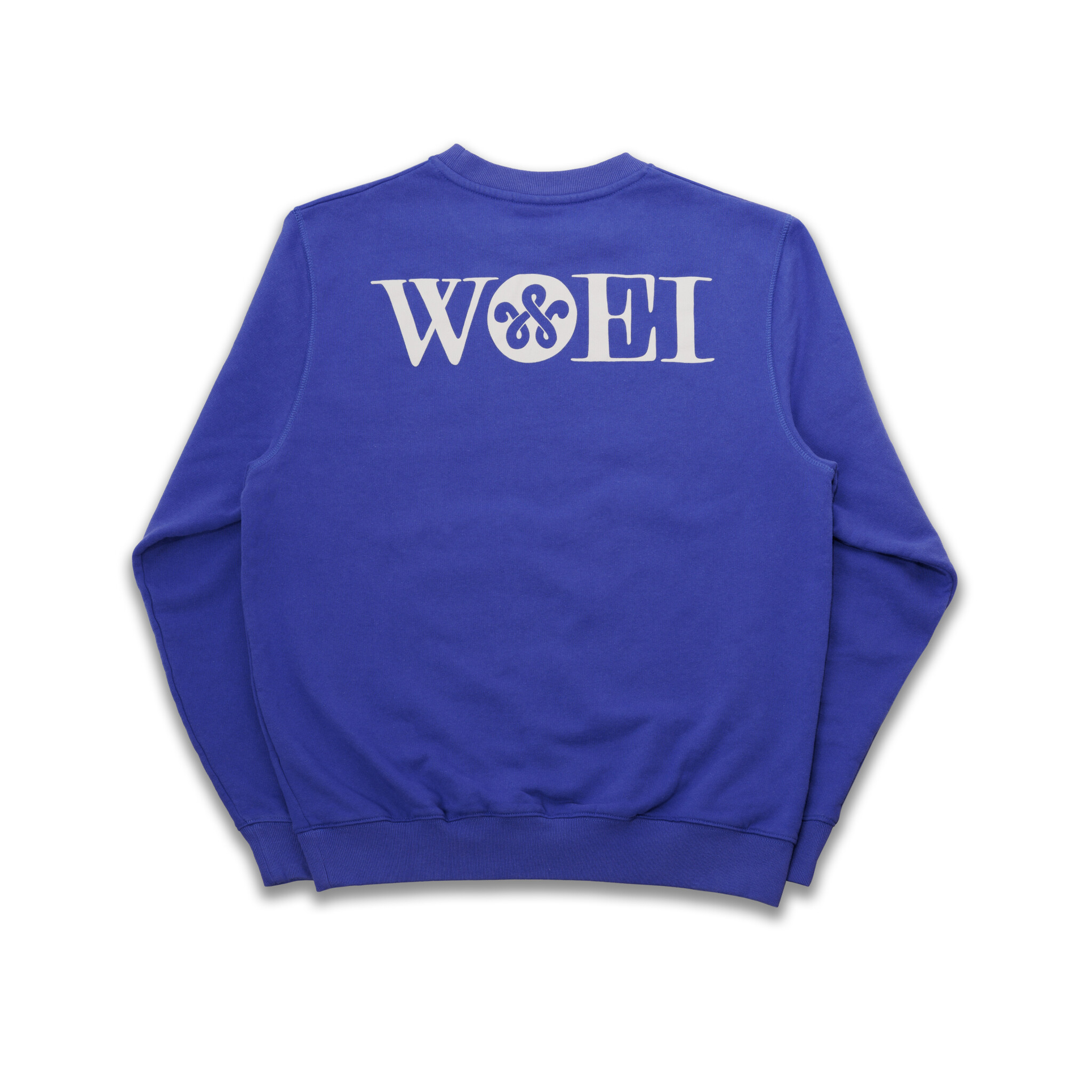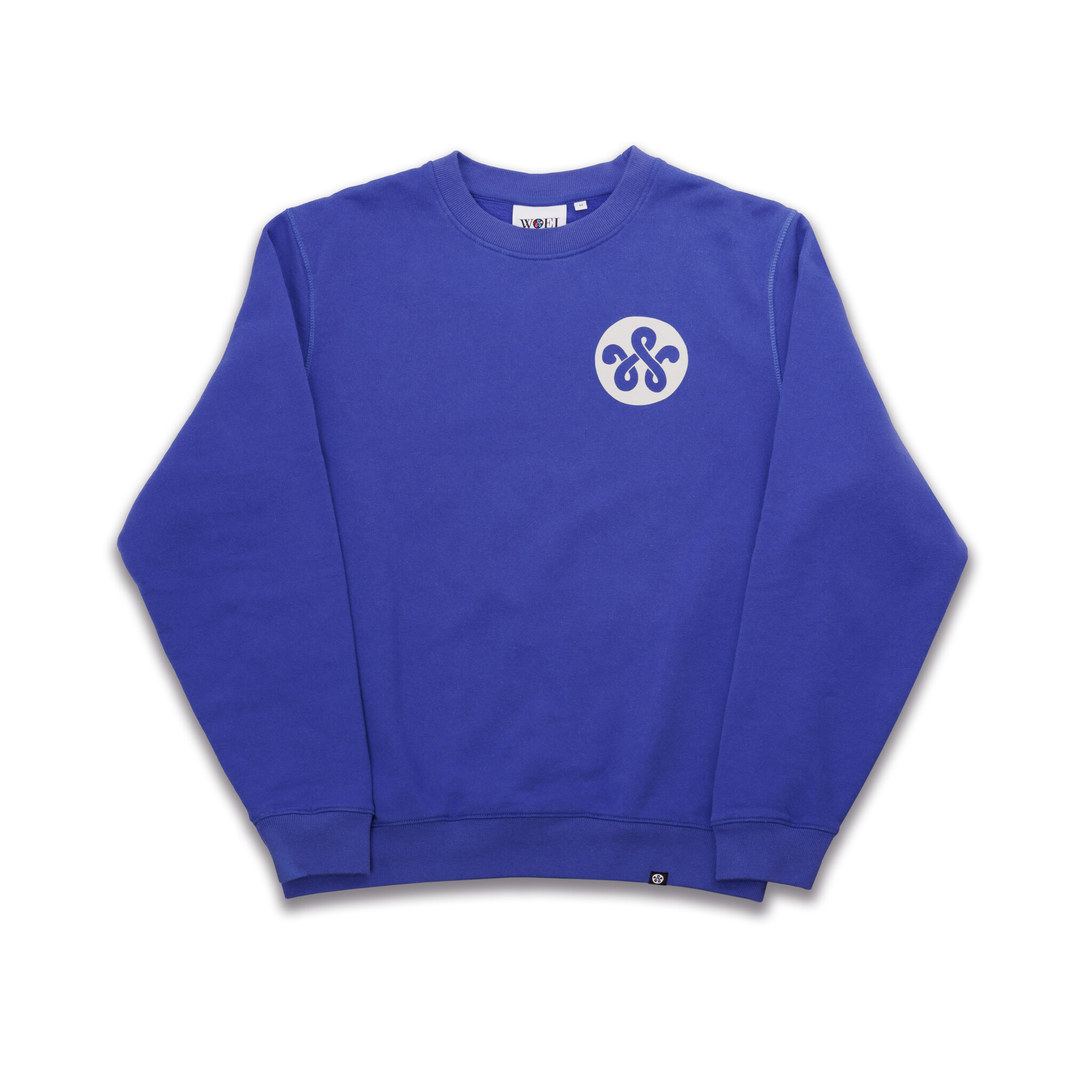 The WOEI crew neck sweater in the color 'Standert Blue' is now available online and in-store at WOEI.