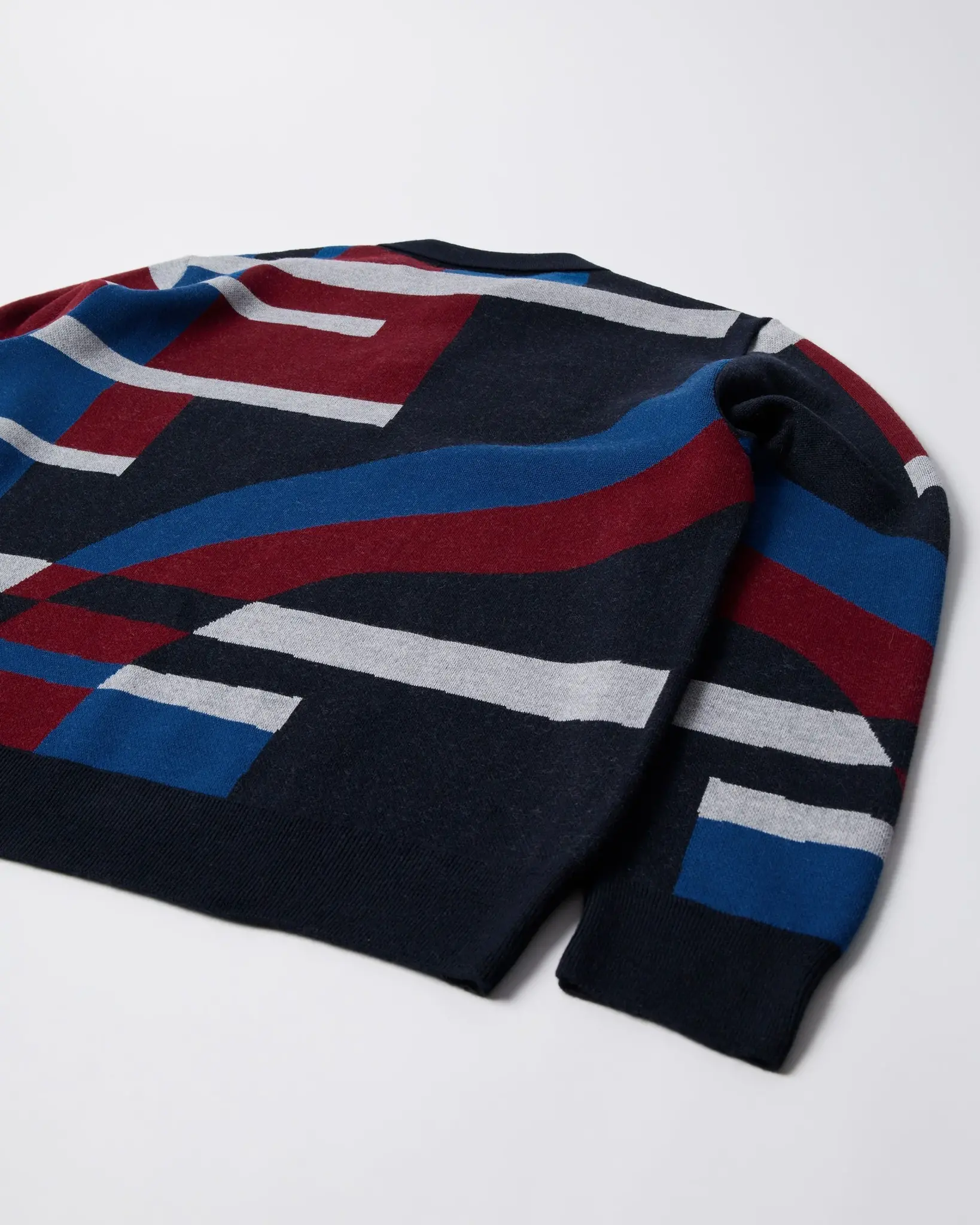 Merino wool mix knitted polo with the Vertical forest artwork all over.